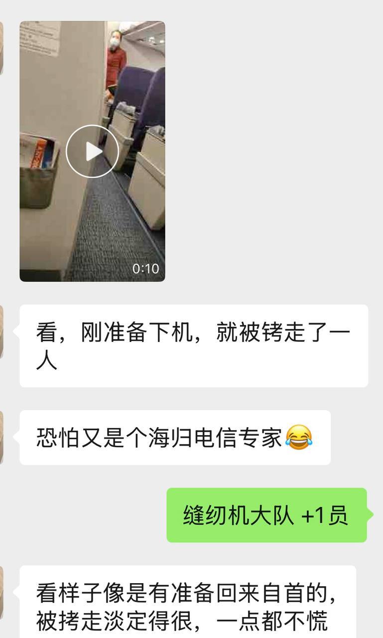 东南亚回国的朋友在飞广东的航班上,遇到帽子叔叔上机带离嫌疑人,疑似投案自首的模样,没有丝毫被抓的惊慌
