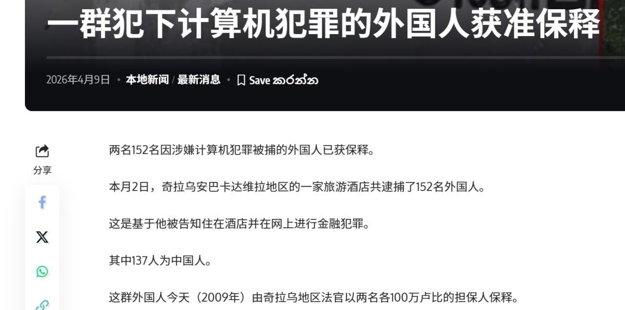 大反转: 斯里兰卡152名涉网络诈骗外籍嫌犯被捕后迅速保释