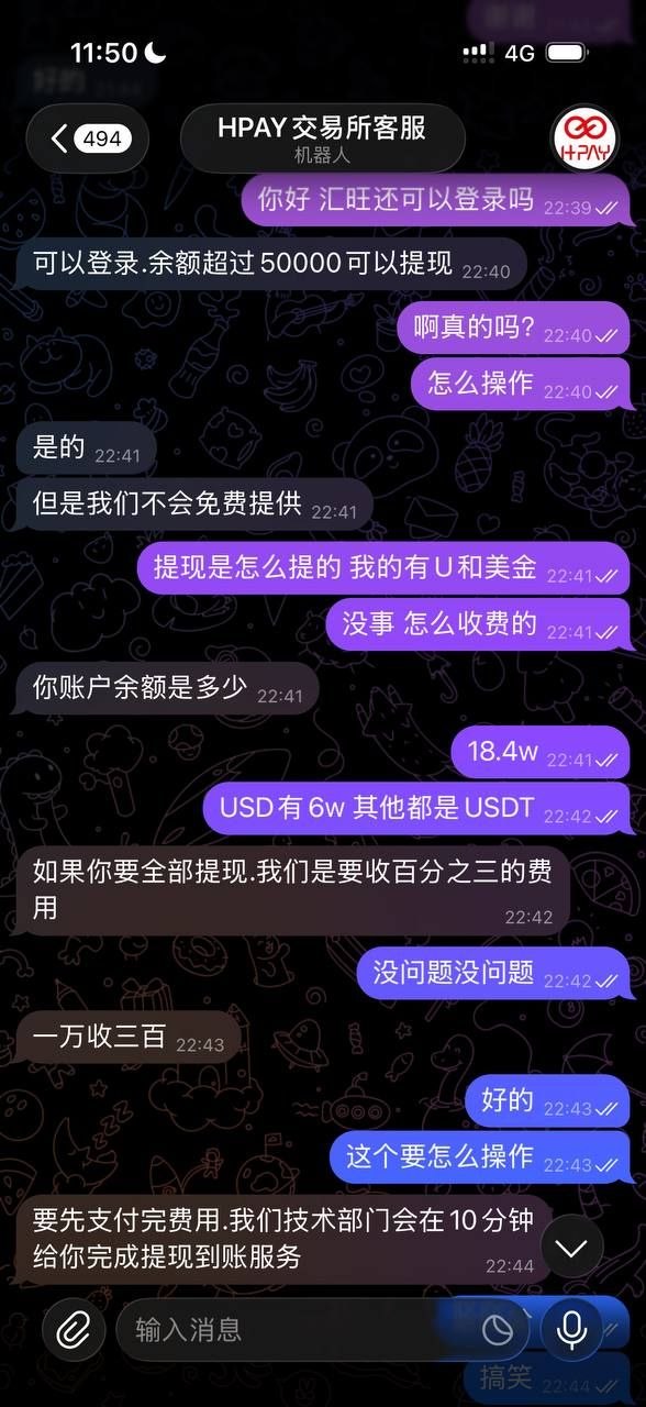 搞笑骗子:登陆Hpay收费100美金?