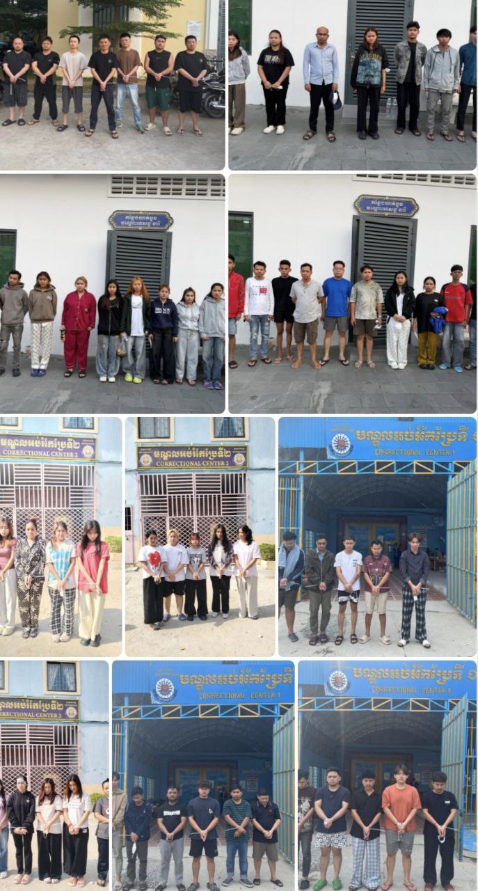 柬埔寨资讯 市法院已下令拘留65人,其中包括8名柬埔寨族人和57名柬埔寨人,他们涉嫌参与金边联合指挥部在万景岗区图尔斯瓦普雷1分区开展的打击网络诈骗活动。