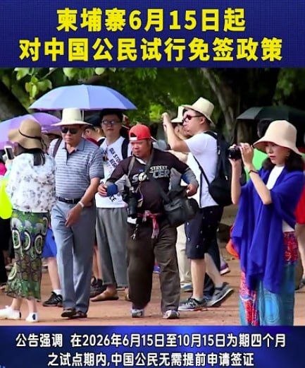 柬埔寨6月起对中国游客免签