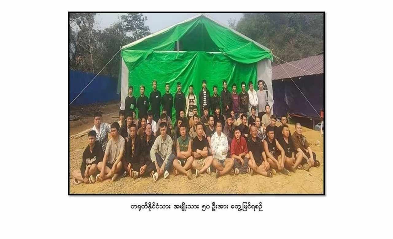 #网友反馈:今天早上缅甸当阳镇缅军巡逻的时候发现一处隐秘诈骗窝点,抓获101个中国籍诈骗人员(男100,女1)。