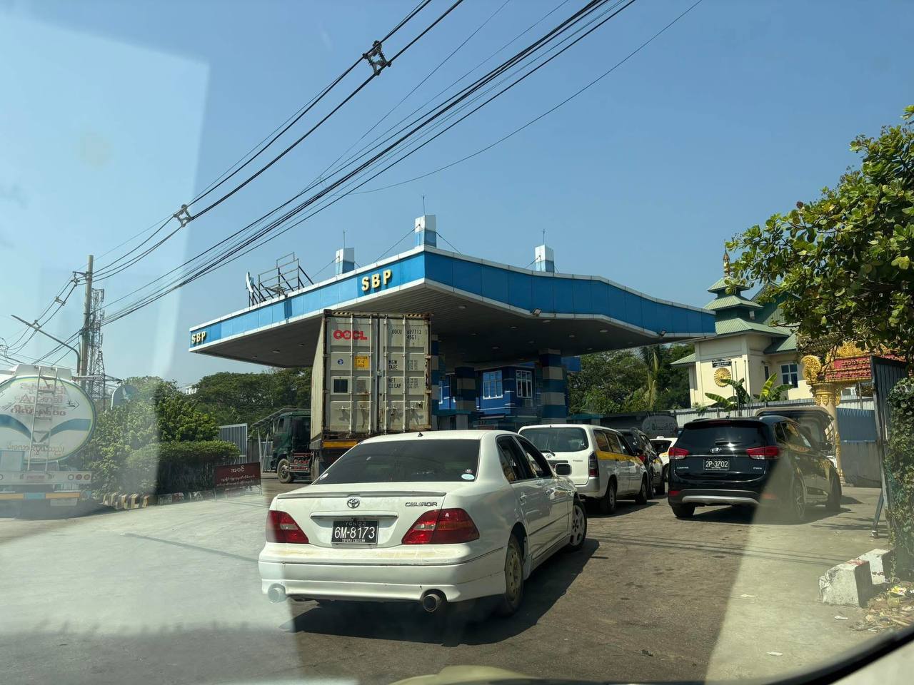 记者走访发现,多家民营加油站(如 MAX、SBP 等品牌站点)前,私家车、货车、网约车排起长队,部分站点采取分时段供油、限量加油的措施,以应对燃油库存不足的问题。受国际油价波动、本地炼油产能不足及物流运输等多重因素影响,缅甸燃油市场供需失衡,油价持续走高,给民众出行、物流运输带来不小压力。