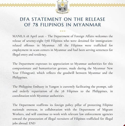 缅甸释放78名菲律宾人涉电诈园区 将陆续遣返回国