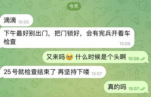 下午ob5会有宪兵开车检查,没护照的最好别出门,把大门锁好,我的房东有消息说25号就不怎么检查了
