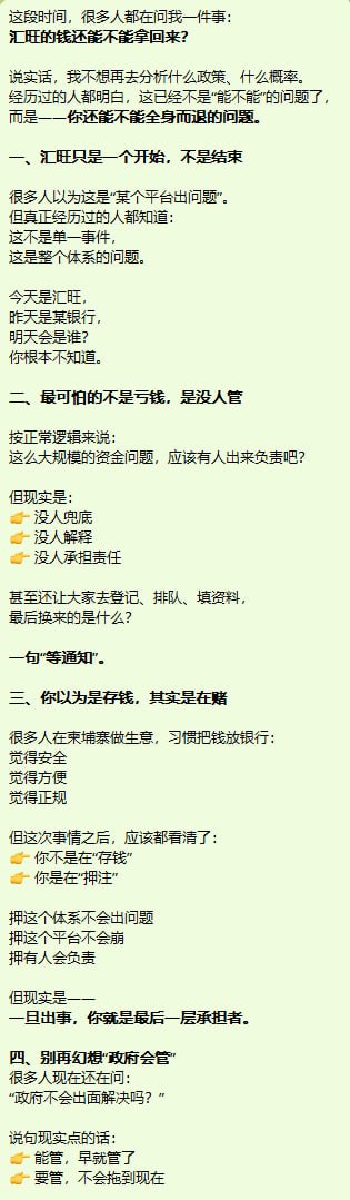 群友投稿对汇旺的看法:汇旺之后我只想说一句:钱,尽量别再放柬埔寨银行了