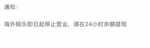 #群友投稿:这个之前汇旺的台子,后面改名海外娱乐,突然发公告停止营业,有知道啥情况的吗?我输了那么多u子。还等着哪天赢回来的,这突然关闭了😂