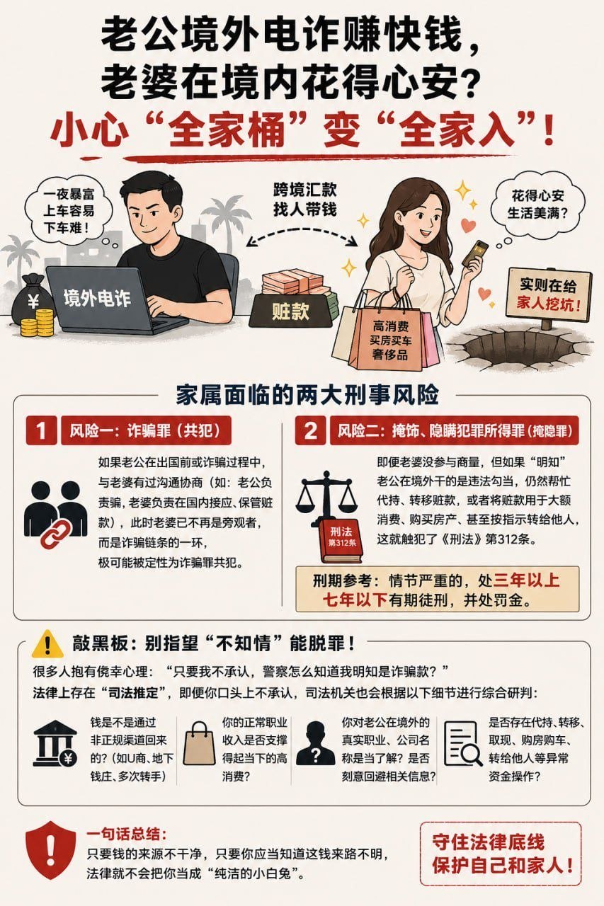 #行业资讯:老公境外电诈赚快钱,老婆在境内花得心安?小心“全家桶”变“全家入”!