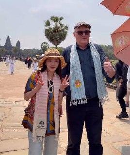 韩星朴山多拉打卡吴哥窟 简约出行展现柬文化魅力