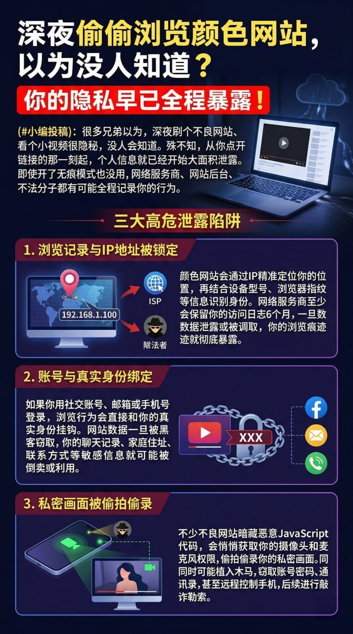 深夜偷偷浏览颜色网站,以为没人知道?你的隐私早已全程暴露!!!
