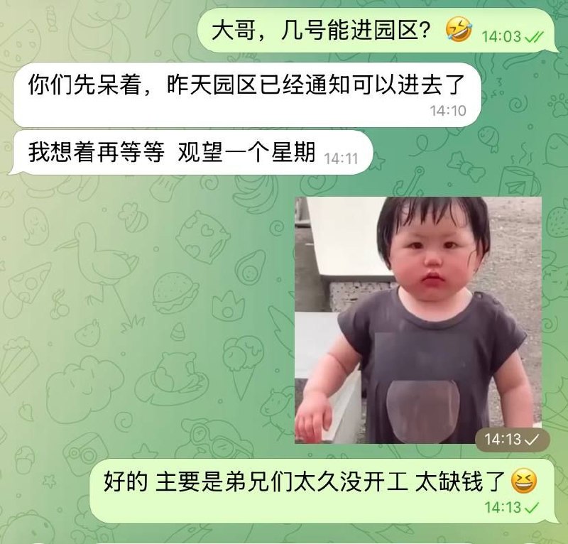 好消息:根据群友反映西港一些园区昨天已经通知可以入场了,应该是检查力度减弱了。