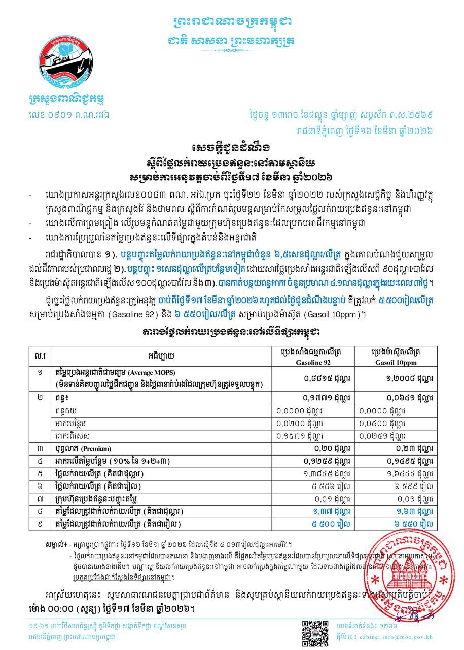 柬埔寨燃油价格再次小幅上涨